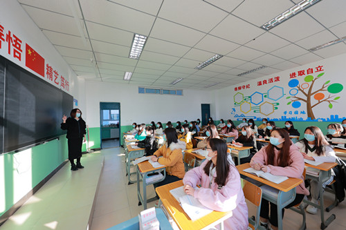 11月15日,甘肅鋼鐵職業(yè)技術(shù)學院有序復學復課,學生們拿起書本回歸課堂。疫情期間,學院認真落實各項疫情防控措施,嚴格實行封閉式校園管理,取得疫情防控的良好成效。圖為該院師生正在進行課堂教學。張志方 攝